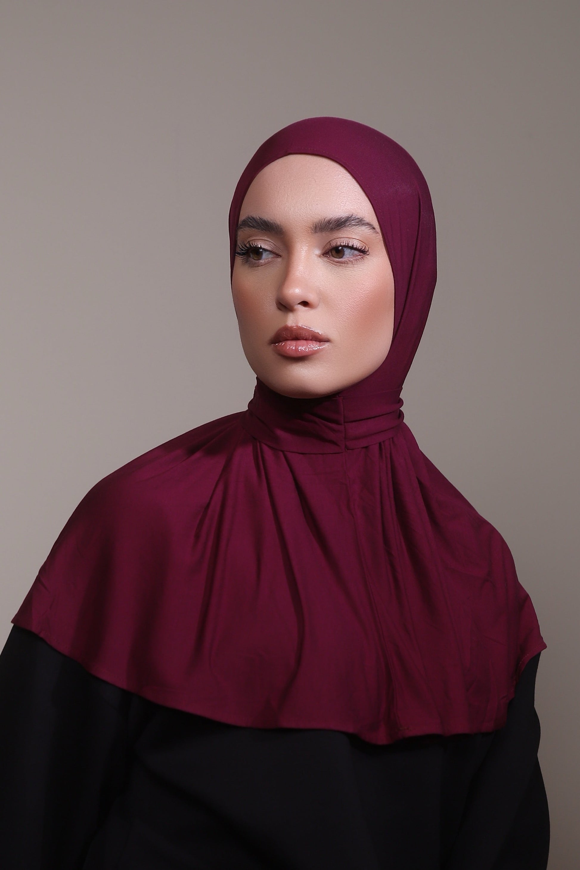 Effortless wear, zero styling. The Bamboo Instant Hijab features a discreet back button closure for a secure, comfortable fit. Soft, breathable bamboo fabric ensures all-day comfort and a lightweight, non-slip drape.